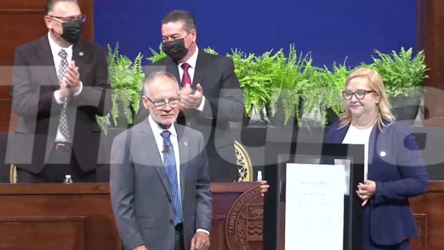 El rector saliente, el doctor Enrique Fernando Velázquez Contreras, fue el encargado de emitir el mensaje de bienvenida a quien será rectora del Alma Mater sonorense en los próximos 4 años, en su intervención, Velázquez Contreras resaltó los logros que ha tenido la Universidad de Sonora en últimas fechas.