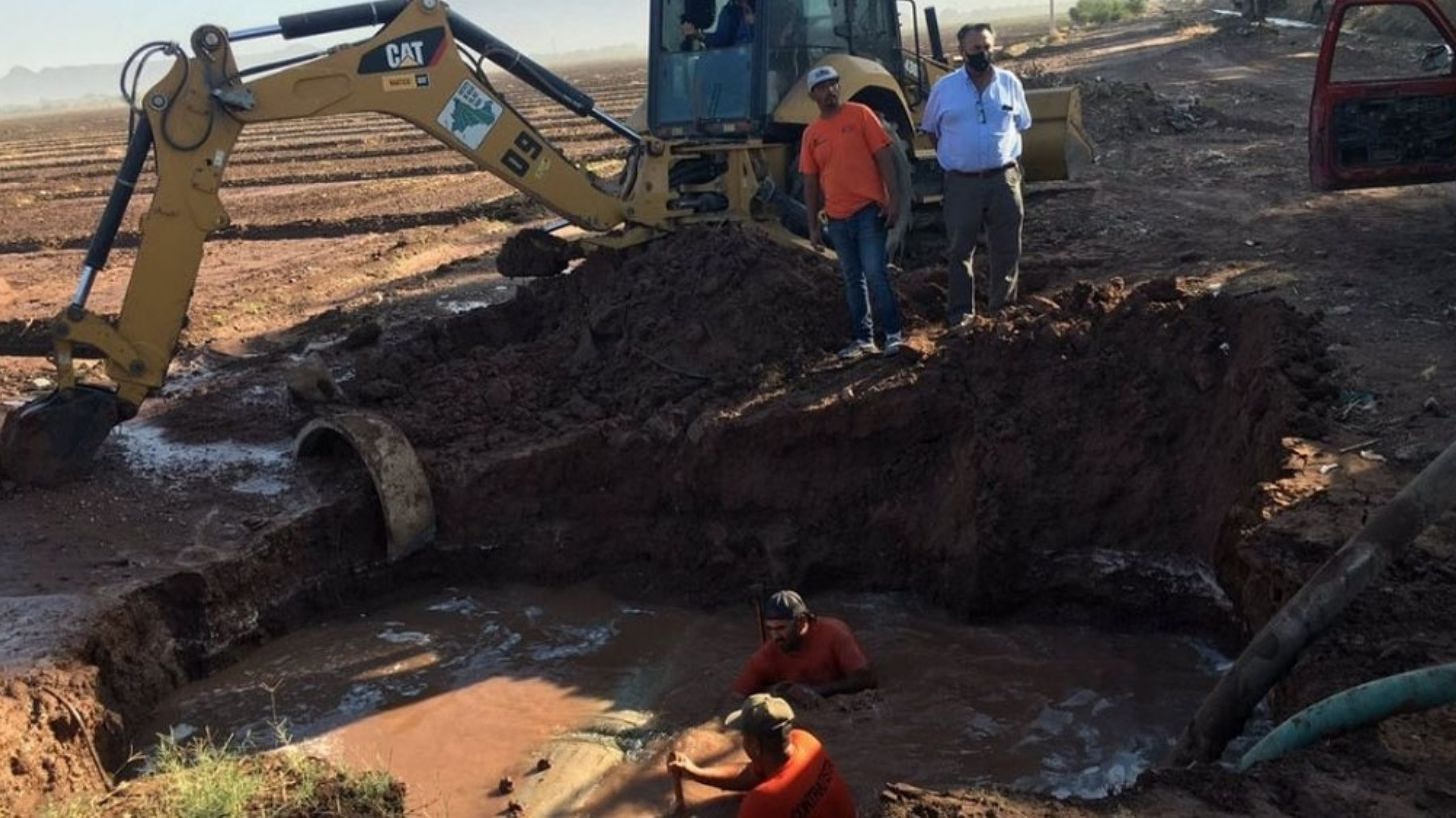 Ciudad Obregón, Sonora.- El pasado 18 de noviembre, una rotura en la línea de conducción de agua cruda que surte a las plantas 3 y 4 del Organismo Operador Municipal de Agua Potable, Alcantarillado y Saneamiento (Oomapas), que afectó a más de 200 mil habitantes, y fuera reparada de manera provisional, mientras llegaba la pieza que fue comprada en Houston, Texas, con un costo de 750 mil pesos, al día de hoy no recibe la reparación definitiva.