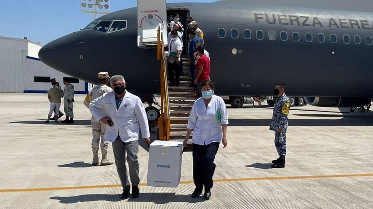 A través de redes sociales, Clausen Iberri detalló que un vuelo de la Fuerza Aérea Mexicana aterrizó en una base militar, en donde se descargaron un total de 16 mil 400 vacunas de AstraZeneca, Pfizer y CanSino.