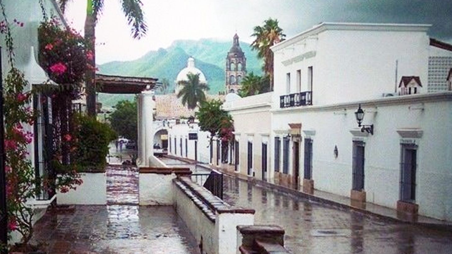 A través de redes sociales se compartieron varios videos donde se puede observar la precipitación en la plaza principal del pueblo mágico, algo que no ocurría desde hace meses y que ha provocado una intensa sequía en Sonora.