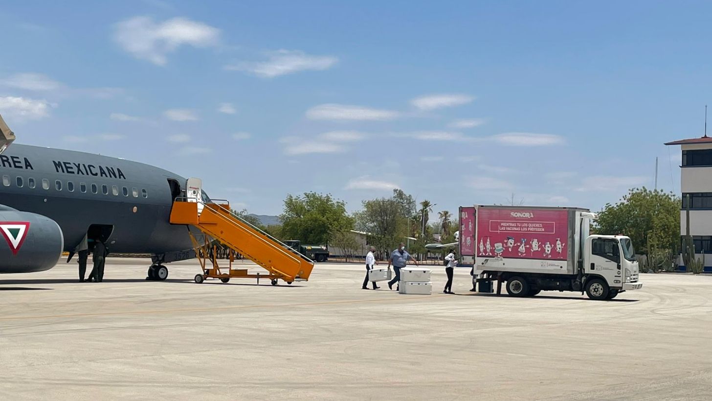 Hermosillo, Sonora.- La tarde de este miércoles 23 de junio, el secretario de Salud en Sonora, Enrique Claussen Iberri, informó que al Aeropuerto Internacional de Hermosillo, arribó un avión con casi 150 mil vacunas que serán utilizadas para vacunar contra Covid-19 a los grupos de entre 40 y 59 años de edad