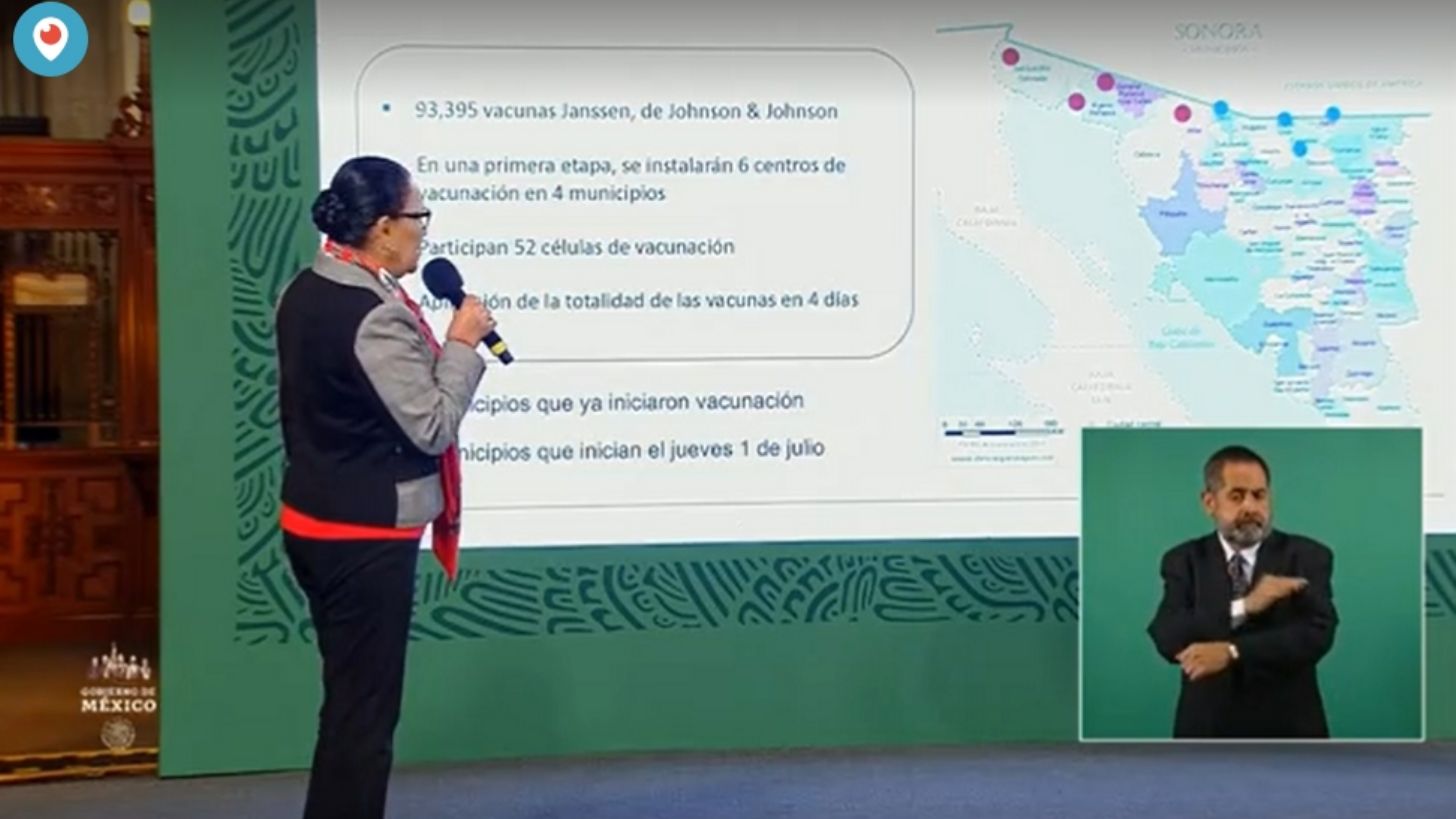 Ciudad de México.- Luego de que el pasado lunes 28 de junio iniciara la vacunación contra el Covid-19 en la frontera de Sonora con EU, AMLO, a través de la secretaria de Seguridad, Rosa Icela Rodríguez, presentó el plan para cada municipio que recibirá el fármaco de Johnson & Johnson. Aquí todo al respecto.