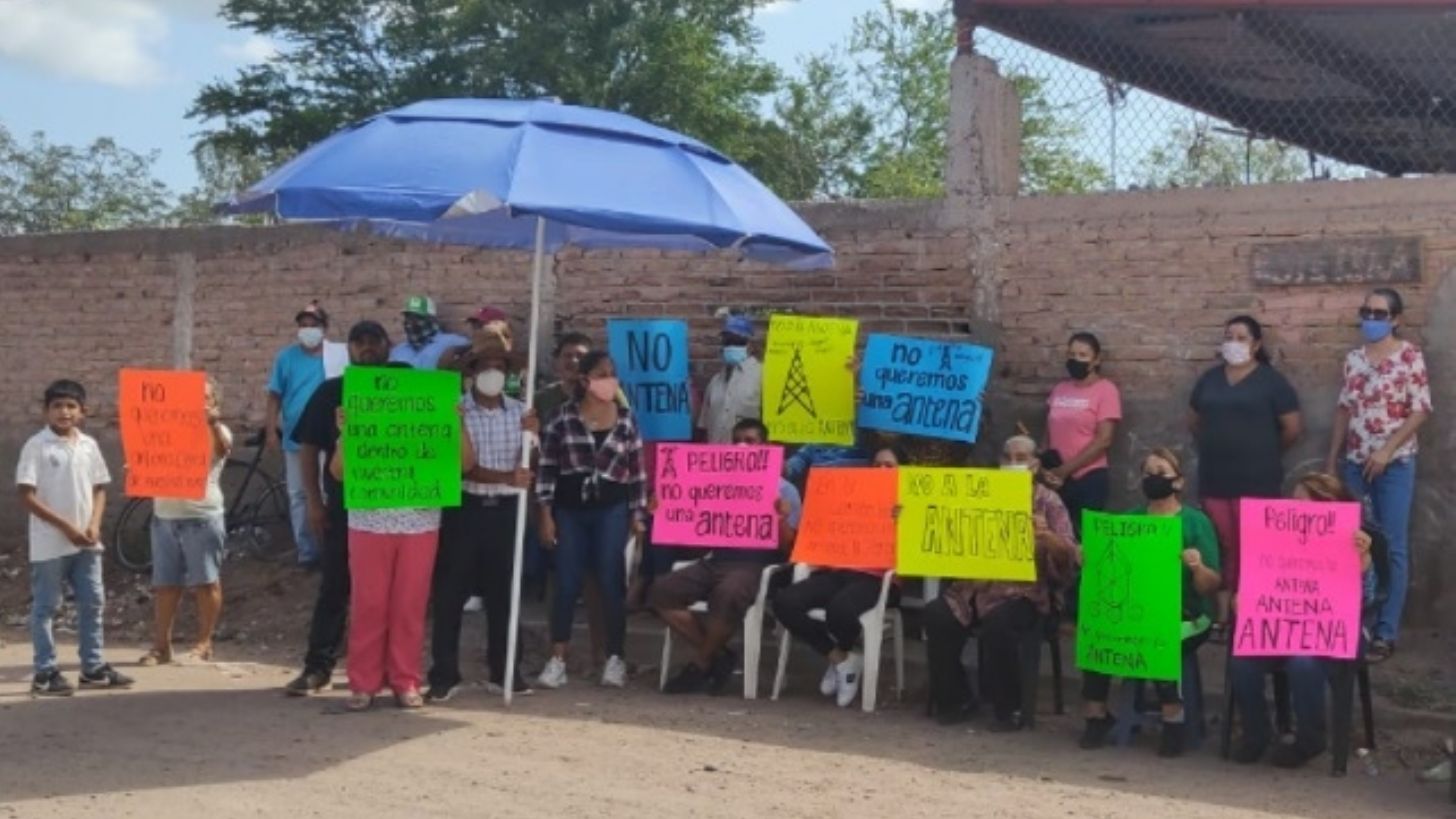 Ciudad Obregón, Sonora.- Denunciando irregularidades en el proceso para la construcción de una antena de radiocomunicaciones, así como afectaciones estructurales en las casas contiguas a la obra, vecinos de la colonia Leandro Valle, realizaron un plantón frente a dónde se ubicará la construcción.