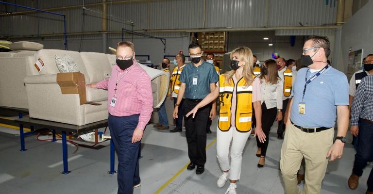 En gira de trabajo por San Luis Río Colorado, la mandataria estatal, acompañada de Don Austin, gerente de planta La-Z-Boy y el alcalde de esta localidad Santos González Yescas, recorrió la planta de la manufacturera de muebles estadounidense, la cual inició operaciones el 18 de febrero de 2021 y por la confianza en la mano de obra sonorense y las facilidades que han encontrado en el estado, decidieron expandirse con una segunda nave.