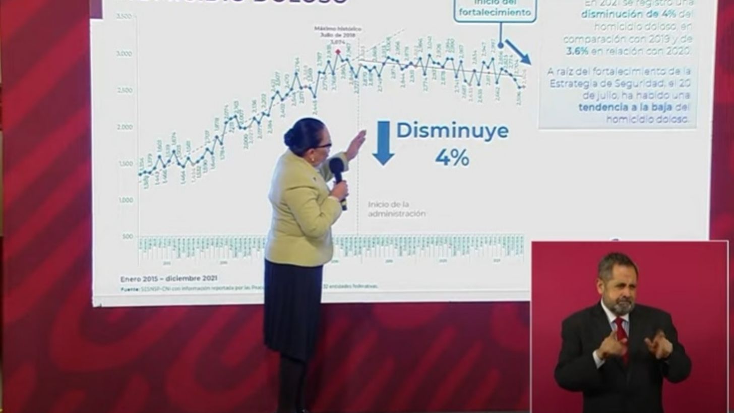 Ciudad de México.- Este día la secretaria de Seguridad y Protección Ciudadana (SSPC), Rosa Icela Rodríguez presentó el informe de seguridad en México del cierre del 2021, en el que se festejó que el homicidio disminuyó un cuatro por ciento; no obstante, hay municipios en donde este delito 'se disparó', por ejemplo, Cajeme en Sonora.