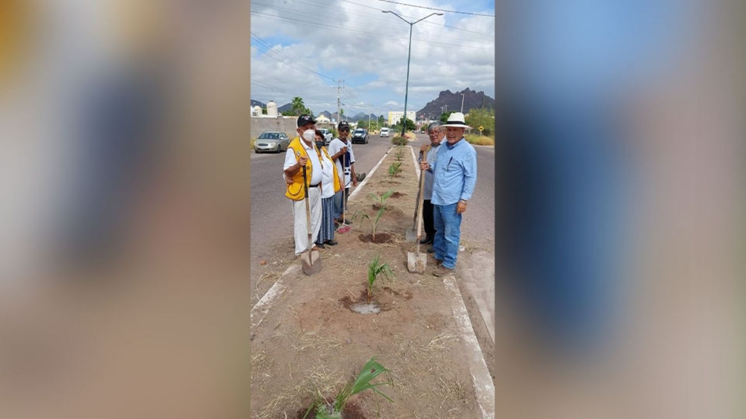 Guaymas, Sonora.- El club de Leones de Guaymas realizó dentro de la causa global del medio ambiente, la segunda etapa de reforestación del camellón central del bulevar Gaspar Zaragoza, frente al fraccionamiento Villa Sofía.