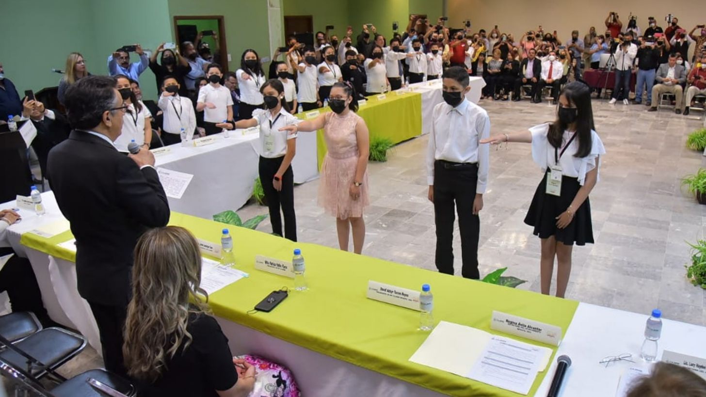 Durante el ejercicio, la alcaldesa infantil, Andrea Palma Méndez, encabezó la sesión extraordinaria de cabildo con la propuesta de pronunciarse a favor de la reactivación total de las escuelas y la impartición de clases presenciales, pues las condiciones del semáforo epidemiológico en verde posibilitan el retorno a los planteles escolares.