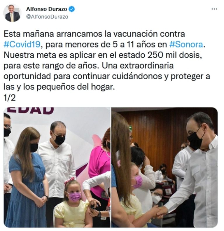 Estamos en una etapa más, vamos a aplicar 48 mil vacunas, es la primera etapa, en Hermosillo se centra, pero la meta es vacunar a 255 mil niños entre 5 y 11 años (en todo Sonora). Algunos no se enteraron, algunos tuvieron alguna preocupación por la vacuna. Obviamente estas vacunas tienen un respaldo científico, total están plenamente garantizadas y ayudan a combatir los riesgos de contagio", manifestó.
