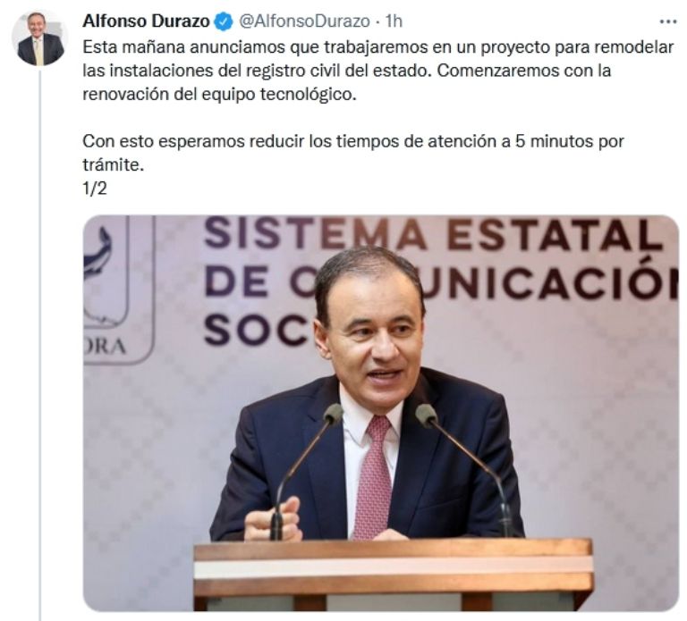 "Tenemos un Registro Civil obsoleto, seguramente habrán visto ustedes las colas interminables que se hacen afuera de las oficinas del Registro Civil, la gente espera hasta 90 minutos para hacer un cambio, alguna modificación a su acta de nacimiento, tienen errores usualmente, pero tienen que esperar hasta 90 minutos", manifestó el mandatario en conferencia de prensa. "Es inaceptable que estén esas condiciones dependencias de atención a la ciudadanía", agregó en su cuenta de Twitter horas después.