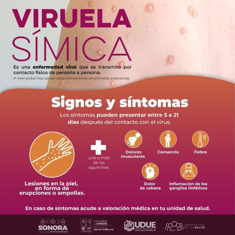 Por tal motivo, la Secretaría indicó a la población sonorense que la viruela símica es prevenible si se evita el contacto físico con pacientes infectados o sospechosos de la enfermedad, lavándose las manos de frecuentemente con agua y jabón, utilizando gel antibacterial, evitando compartir ropa, alimentos, bebidas y diversos utensilios personales, así como usando cubrebocas para disminuir el riesgo de contraer la enfermedad.