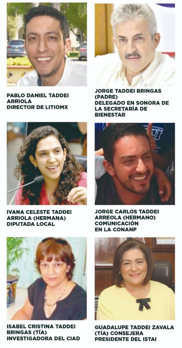 Hermosillo, Sonora.- Los Taddei suman su décimo miembro en la nómina gubernamental con el nombramiento de Pablo Daniel Taddei Arriola como director de LitioMX, la empresa creada por el gobierno federal para la explotación del metal. En el gobierno que prometió un freno absoluto al nepotismo y al peso específico de las relaciones sociales y políticas como llave para obtener beneficios, la familia Taddei ejemplifica que dicho modelo de gestión solo aplica para unos.