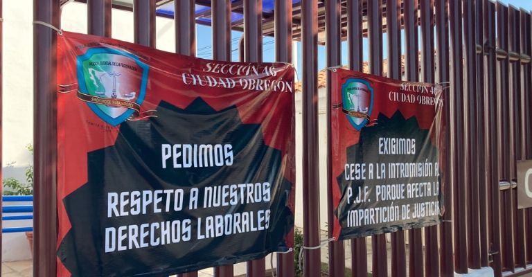 Ciudad Obregón, Sonora.- Como muestra de su desacuerdo en contra de las reformas presentadas por Andrés Manuel López Obrador encaminada a desaparecer 13 fideicomisos que otorgan diversos beneficios económicos a los trabajadores del Poder Judicial, personal de los juzgados federales, se manifestaron para que cesen lo que ellos consideran ataques directos contra la autonomía de la institución.