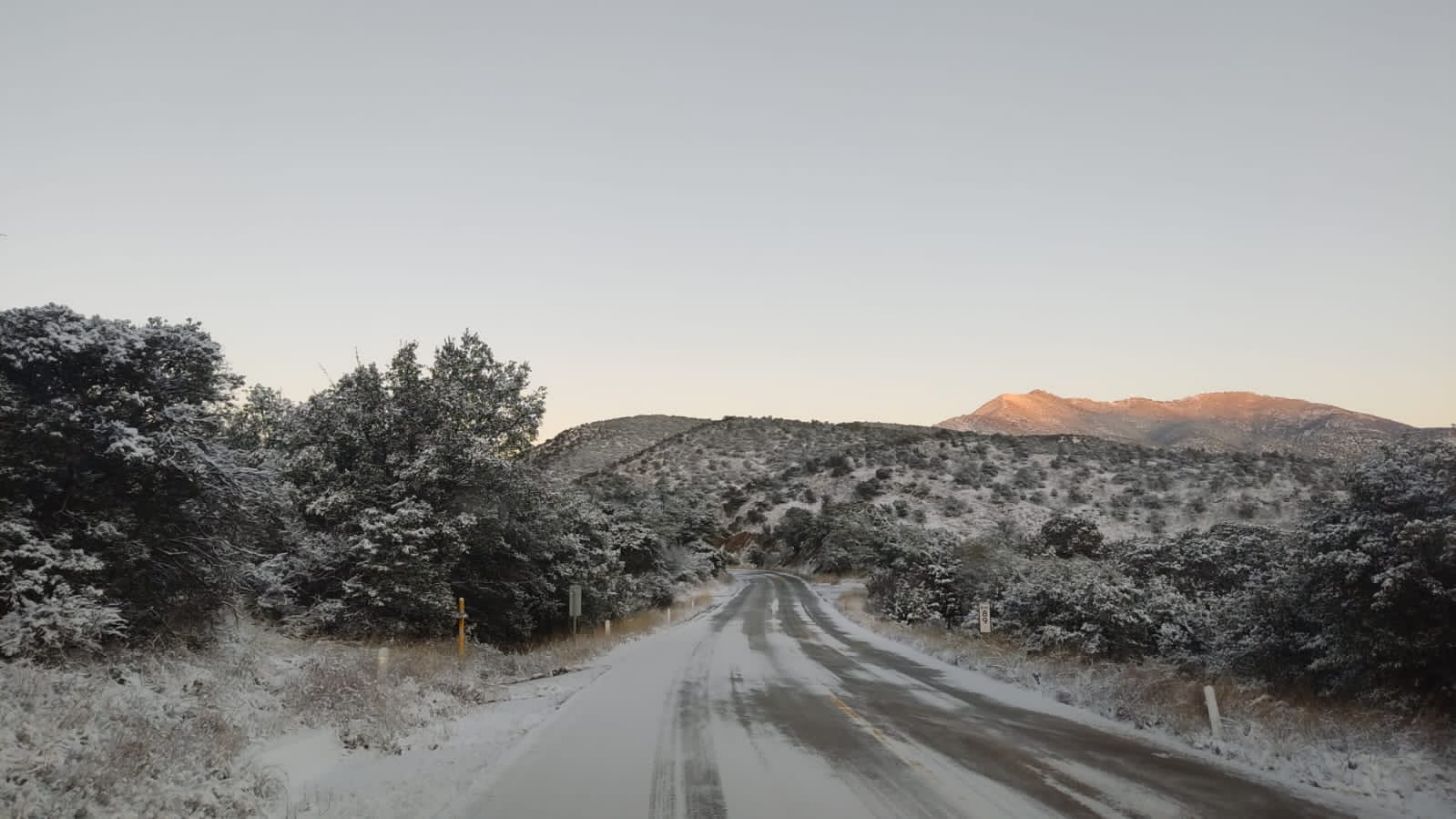 ACTUALIZACIÓN CARRETERA Debido al congelamiento de sus vías, se mantienen cerrados los tramos carreteros Ímuris - Cananea y Agua Prieta - Janos, en el lugar ya se encuentran trabajando elementos de los tres niveles de gobierno para reaperturar lo más pronto posible", escribió Protección Civil Sonora en sus redes sociales.