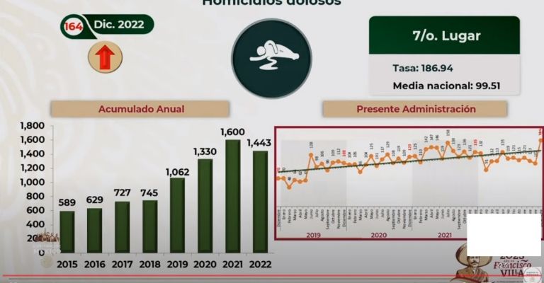 El titular de la Sedena, Luis Cresencio Sandoval, destaca que Sonora ocupa el séptimo lugar a nivel nacional en homicidios dolosos con mil 443 en 2022; la incidencia se concentra en los municipios de Hermosill,Cajeme,Guaymas y San Luis Río Colorado. Además señala que para finales de este año se busca tener 20 instalaciones de la Guardia Nacional, este año se están construyendo 5.