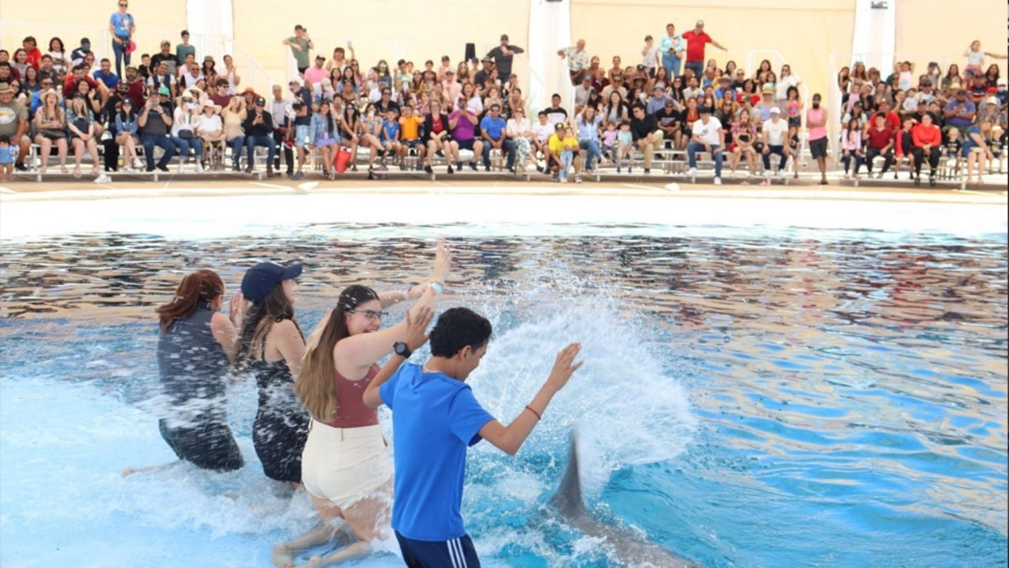 Guaymas, Sonora.- Durante este periodo vacacional ha registrado llenos totales el Delfinario Sonora en las demostraciones educativas de delfines y lobos marinos con visitantes nacionales y del interior de estado.