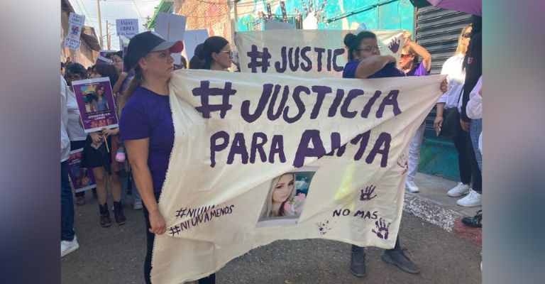 La manifestación comenzó a las 16:20 horas en el Callejón de la Mujer, avanzó a Palacio Municipal y terminó en la Fiscalía de Justicia donde varias mujeres tomaron el micrófono para exigir justicia y llamar a la reflexión. Además pegaron carteles llamando a las autoridades a cumplir con la promesa de justicia y que no solo quede en palabras.