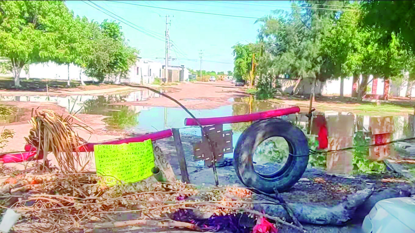 Ciudad Obregón, Sonora.- “Tenemos un cochinero de aguas negras por el problema de drenajes tapados, tenemos años y por más reportes que hacemos nadie nos hace caso, por eso cerramos la calle, para que volteen a vernos”, expresó Silvia residente de la colonia Casa Real.