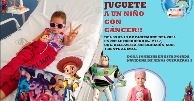 Ciudad Obregón, Sonora.- Erika Ayón, presidenta de la Fundación Jesucristo Misericordioso informó que para una vez más llevar a cabo la tradicional posada que cada año se les organiza a niñas y niños con cáncer que acuden a recibir su tratamiento en el área de oncología del Instituto Mexicano Del Seguro Social, actualmente se encuentran recibiendo donativos.