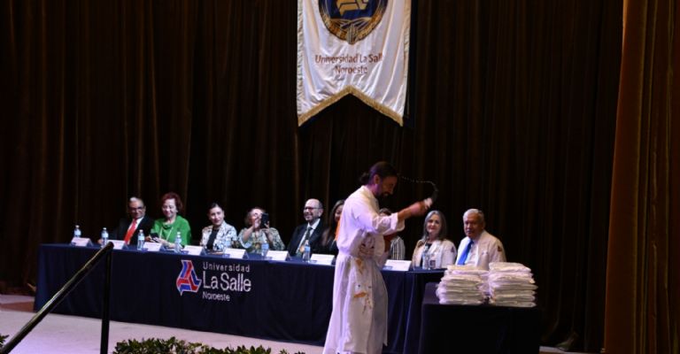 Ciudad Obregón, Sonora.- La Universidad La Salle se vistió de manteles largos y batas blancas para dar la bienvenida a la primera generación de la licenciatura en Médico Cirujano, la cual consta de 54 estudiantes que recibieron la bienvenida a la institución en presencia autoridades de salud pública y académicas, docentes, familiares y amigos.