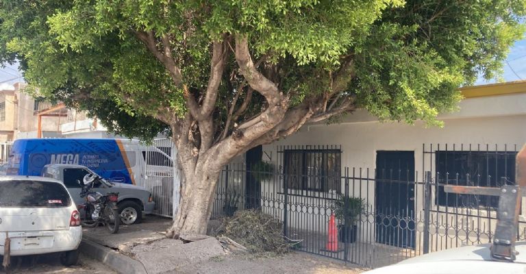Ciudad Obregón, Sonora.- Los intensos rayos del sol comenzaban a ser mitigados por nubes de lluvia, refrescando el ambiente un ligero viento que tras unos momentos se convirtió en fuertes ráfagas de aire, que derivó en la caída de un árbol frente a la vivienda de José Carlos Sánchez.