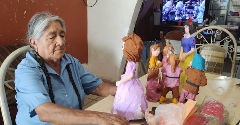 Explicó que aun cuando recibe el apoyo de sus hijos, la venta de piñatas le sirve para completar su gasto, así como para comprar los insumos que va a requerir y seguir fabricando sus artesanías.