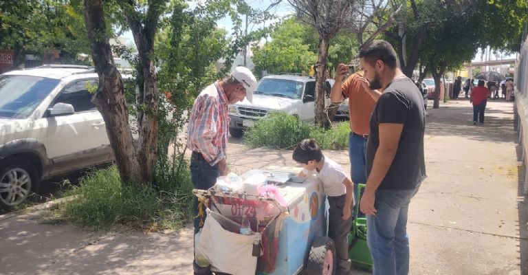 Con su carrito de paletas, recorre las calles de Ciudad Obregón, carrito que cada vez pesa más, y es que con sus 79 años de edad, la vitalidad de aquel hombre que comenzó con la venta de paletas hace 40 años se ha ido quedando en cada paso, pero, aunque la vida no le dio hijos, su trabajo le ha regalado la sonrisa de muchos niños.