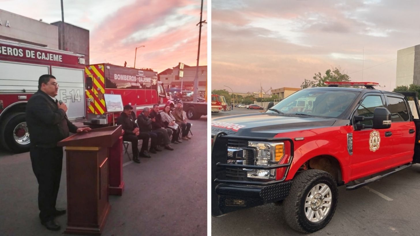 También hizo entrega de dos unidades tipo pick up; la primera de ellas, una Ford doble cabina modelo 2016, la cual será equipada para realizar labores de rescate acuático, mientras que en la segunda unidad se colocarán dos tanques, uno de agua y otro de espuma, lo cual permitirá que los llamados 'tragahumo' cuenten con un vehículo de acción rápida.