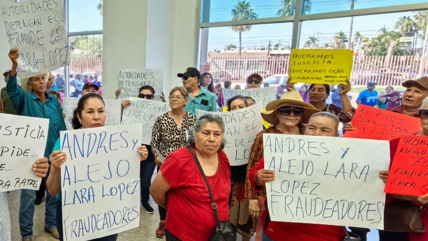 Ciudad Obregón, Sonora.- Alrededor de 200 personas del Frente Vanguardia, Indígenas y Yoris del sur de Sonora se manifestaron este martes 4 de noviembre en el Centro Integral de Procuración de Justicia de Ciudad Obregón, denunciando supuestos fraudes.