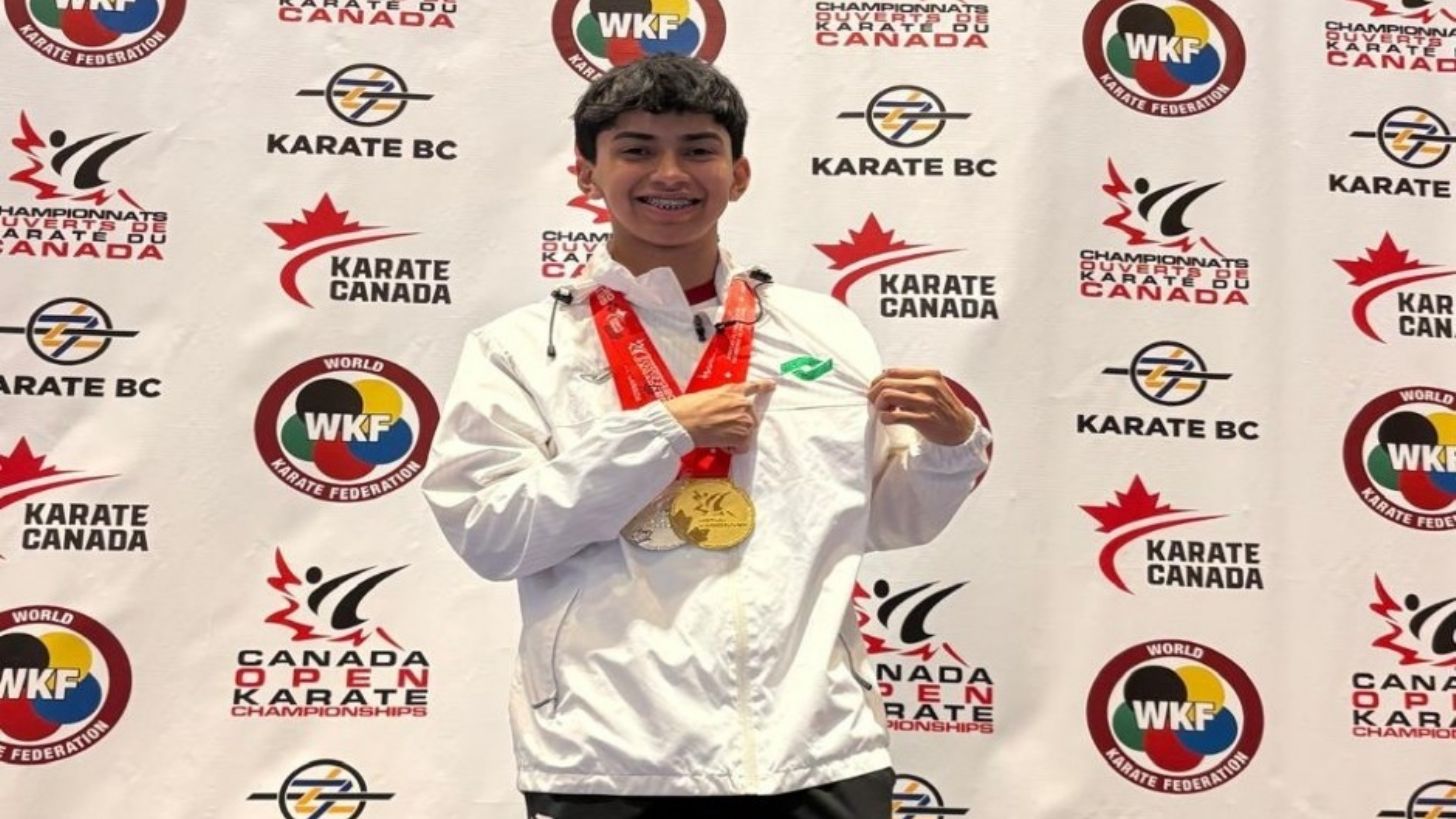 San Luis Río Colorado, Sonora.- Emmanuel Viera Hernández, estudiante del Colegio de Educación Profesional Técnica del Estado de Sonora (Conalep), plantel San Luis Río Colorado, ganó medallas de oro y plata en el Canada Open Karate Championships 2025, realizado en la provincia de Columbia Británica.