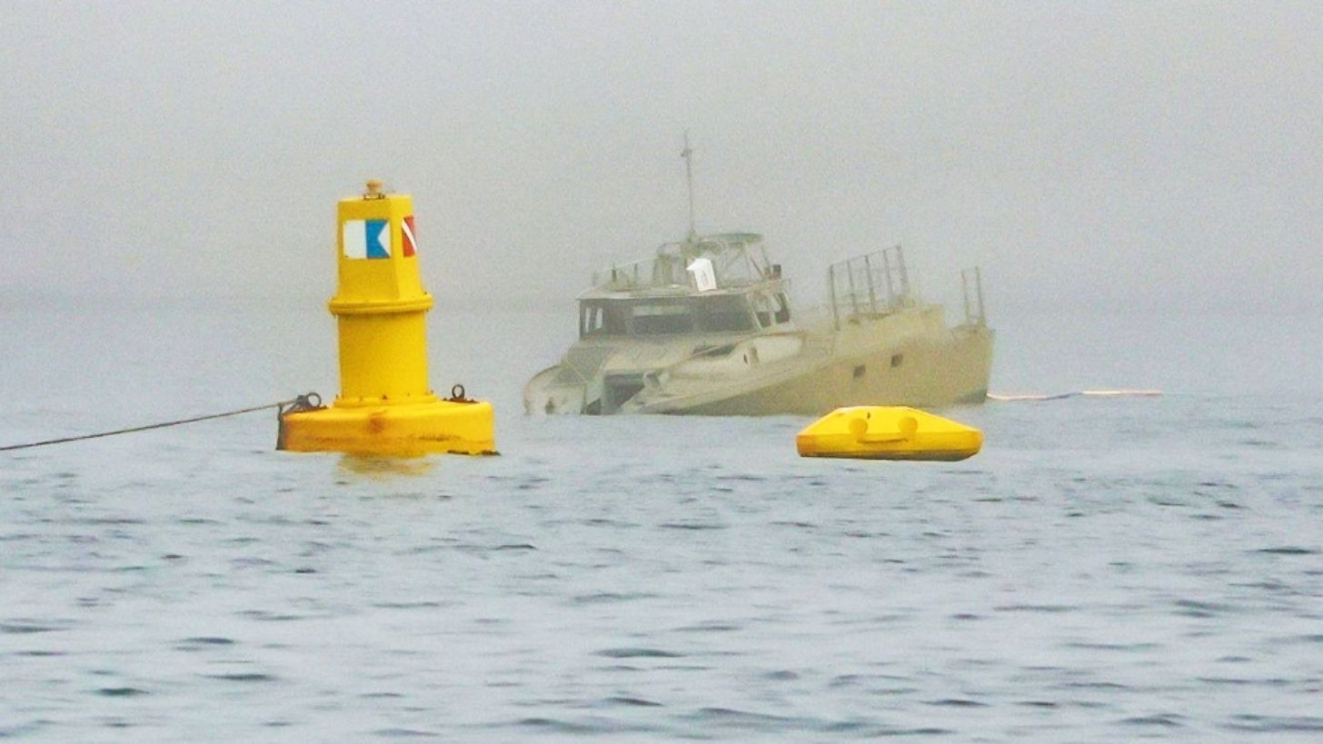 La nave, que comienza a ser arrecife artificial, mide 13 metros de eslora, y se unió a los buques Suchiate, hundido en marzo del año pasado, y Santos, hundido en 2022.