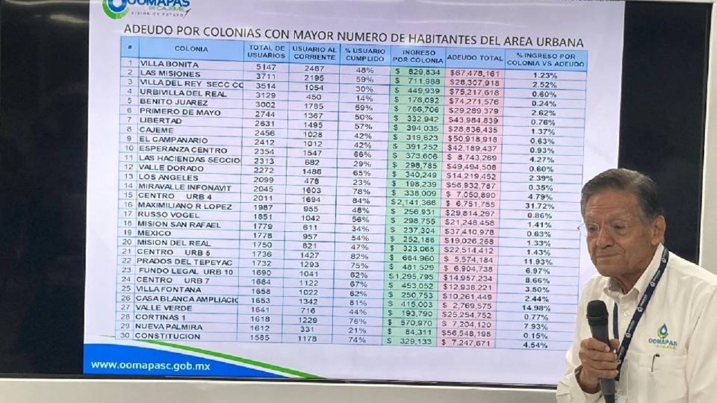 El director comercial del Oomapasc comentó que en los adeudos totales mencionados con anterioridad se encuentran incluidas las deudas de los rubros comerciales, casas abandonadas y tomas muertas.