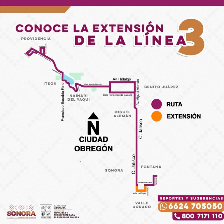 Ciudad Obregón, Sonora.- Para satisfacer las necesidades de usuarios del transporte público en Ciudad Obregón, el Gobierno de Sonora realizó adecuaciones en tres de las rutas del transporte urbano, mismas que entraron en vigor, a partir del pasado lunes 2 de junio.