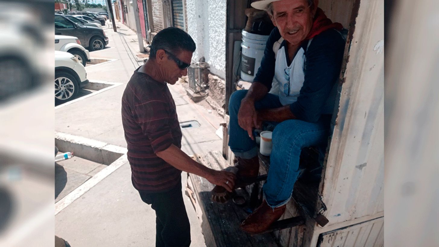 José Ángel Lizárraga agregó que cuando comenzó en este oficio había unos 20 boleros en la ciudad, y ahora solo quedan dos: Uno que se ubica a dos cuadras, en esquina de Reforma y calle Morelos, y él, “solo que este compañero solamente tiene como ocho años de desempeñar esta chamba, casi 30 años menos que un servidor”.