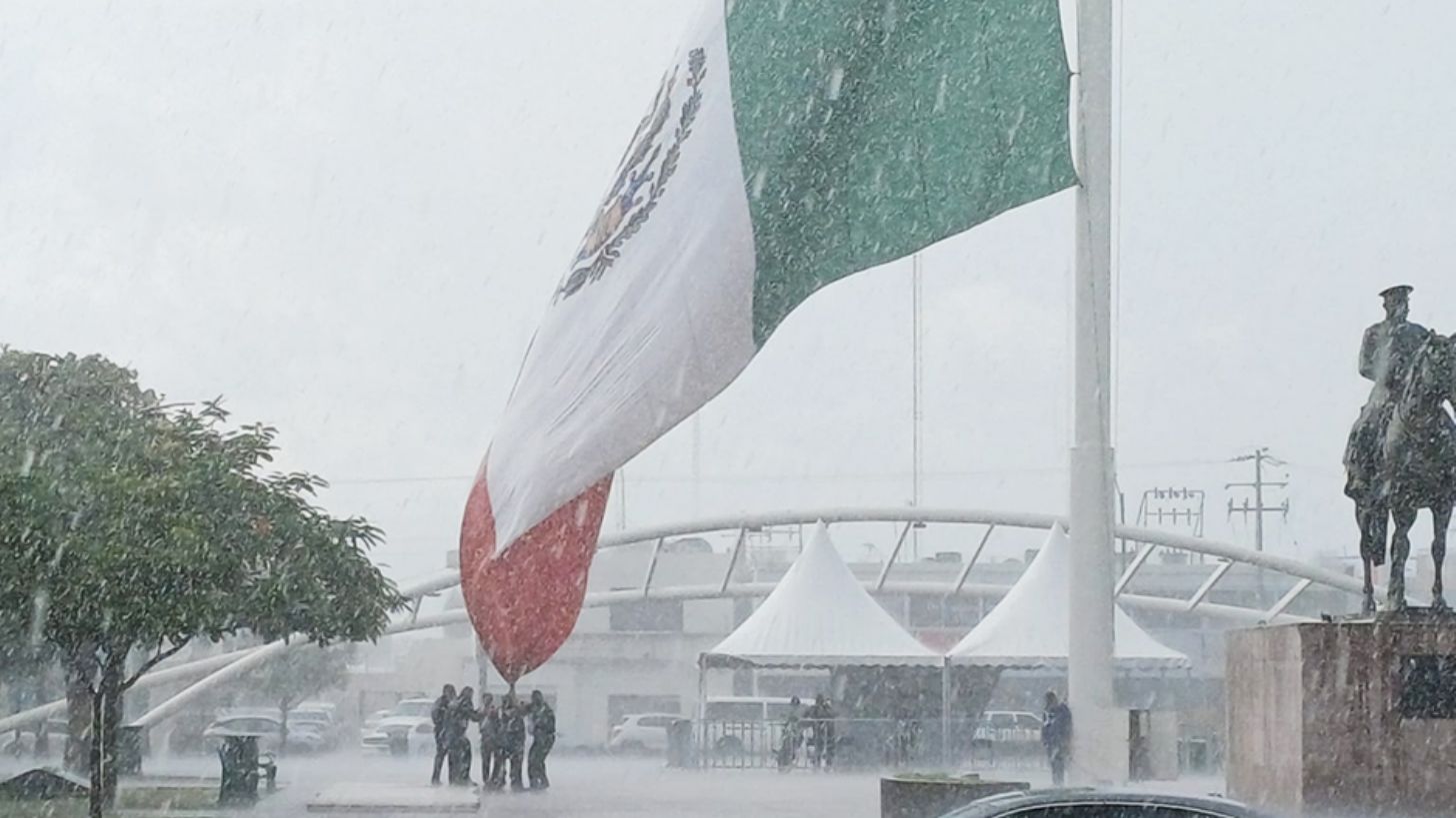 Empezó a llover fuerte y miramos que la bandera, ya toda mojada, se venía abajo; corrimos para que no cayera al suelo, ya que es el mayor símbolo patrio y no nos importó mojarnos, con todo y teléfonos, armas y uniformes por rescatarla", comentó Alejandro Robles, uno de los oficiales.