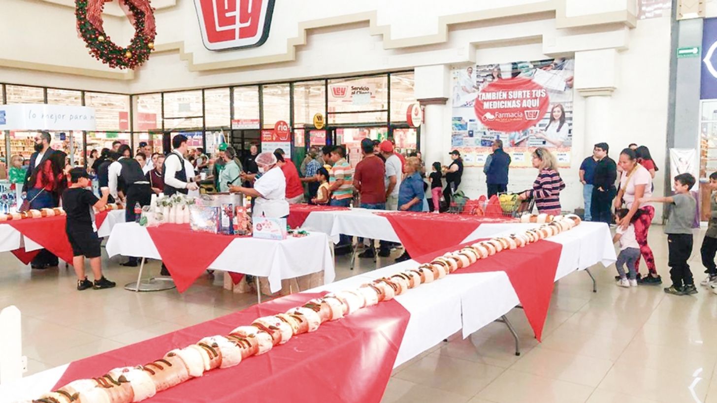 Ciudad Obregón, Sonora.- Con motivo del Día de los Santos Reyes, personal de Casa Ley realizó su tradicional corte de rosca, que este año celebra una década de realización.