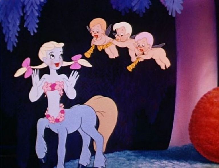 - Fantasía (1940). Al inicio de esta película puede verse a un personaje llamado 'Sun Flower', el cual es un centauro que posee rasgos afroamericanos de forma exagerada, además su misión es servir a otras centauros blancas, a quienes les hace pedicura, peina y coloca flores para que se vean más hermosas. Disney decidió eliminar a este personaje de las copias remasterizadas en los años 60.