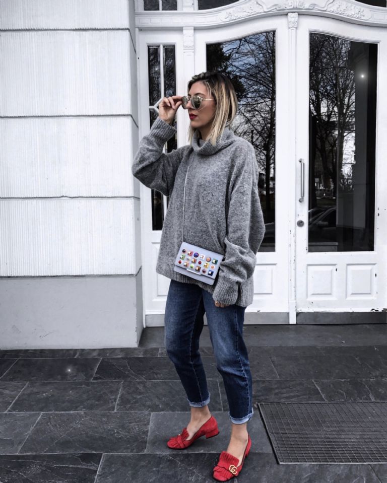 El rojo es un color vibrante y dependiendo de su tonalidad, bastante intenso, por ello resalta bastante bien cuando haces un contraste con los tonos de tu 'outfit', los cuales pueden ser grises, recuerda que este último se ha transformado en el tono de la temporada, así que no dejes de aprovechar esta magnífica oportunidad.