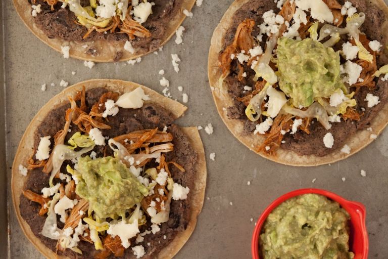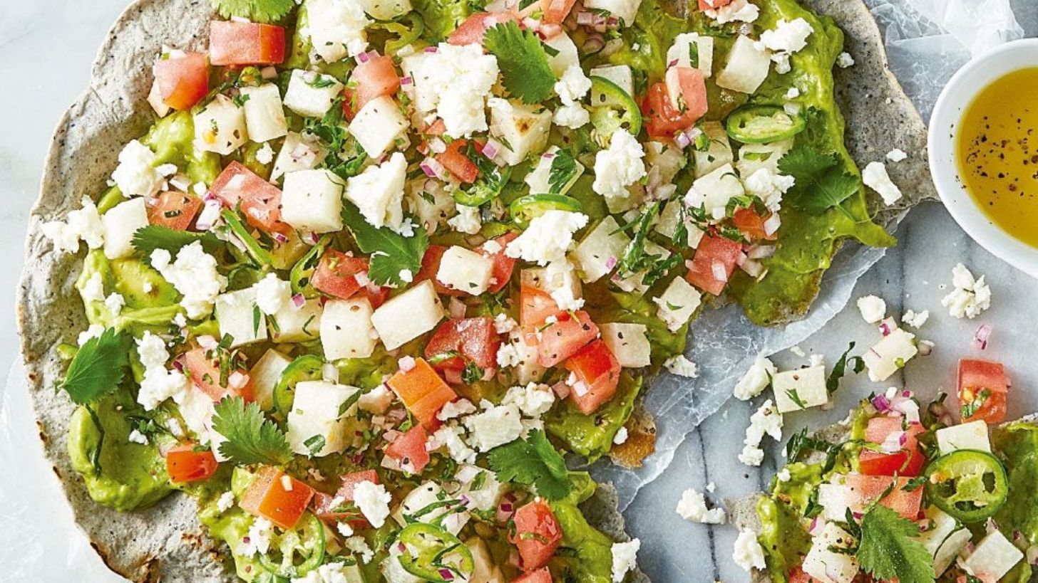 2. Calienta la tlayuda y unta en la superficie un poco de guacamole.