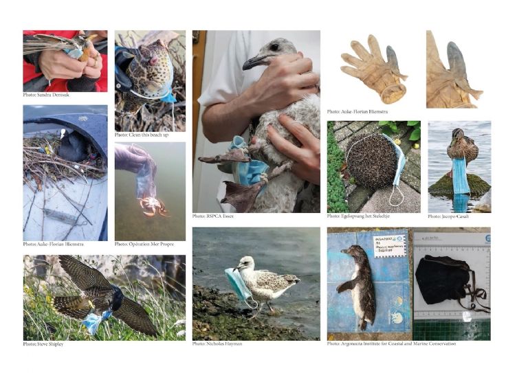 Entre los artefactos de Equipo de Protección Individual (EPI) que más han causado daños en los animales son los guantes de látex y los cubrebocas de un solo uso, los cuales tienen hilos de plástico, lo que rápidamente puede provocar su muerte.