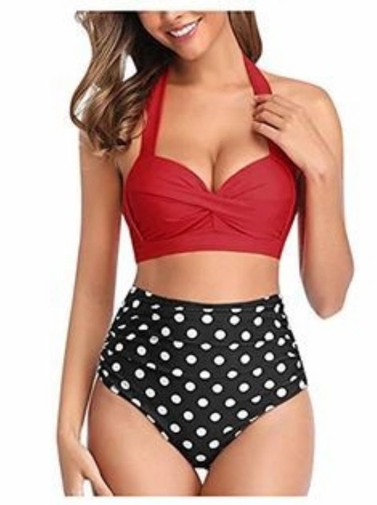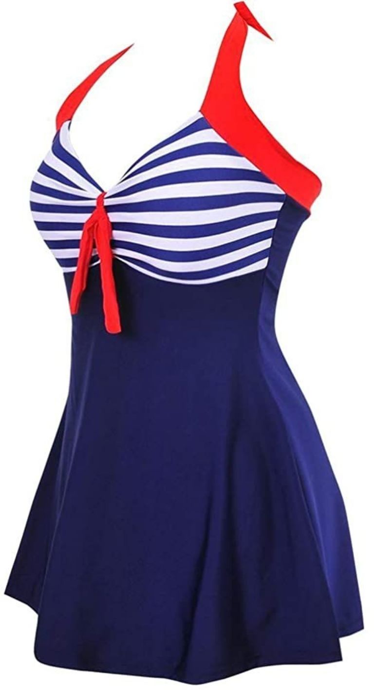 Cuando un traje de baño lleva lunares o líneas en alguna de sus piezas, muchas personas no pueden evitar remitirse a una época pasada, algo así como la opción que puedes ver en pantalla.