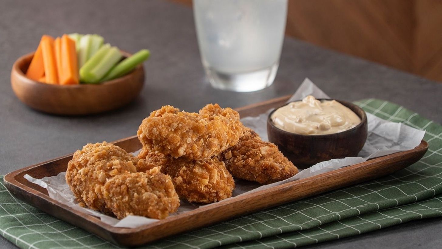 - Pasado el tiempo, empaniza el pollo con las frituras.