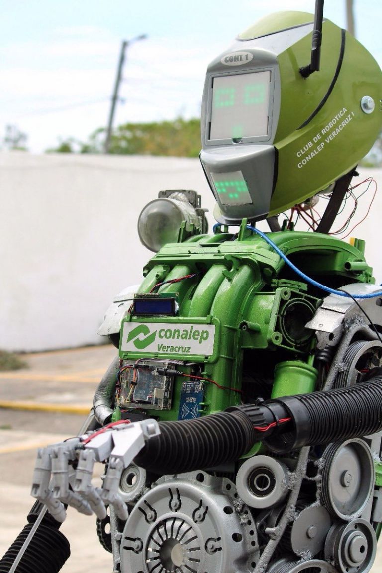 Jalapa, Veracruz.- Estudiantes del Colegio Nacional de Educación Profesional Técnica o Conalep, plantel I, del estado de Veracruz, crearon un robot que habla y ayuda a prevenir el Covid-19. Lo elaboraron por medio de piezas de reciclaje, lo que lo convierte en un proyecto amigable para el medio ambiente.