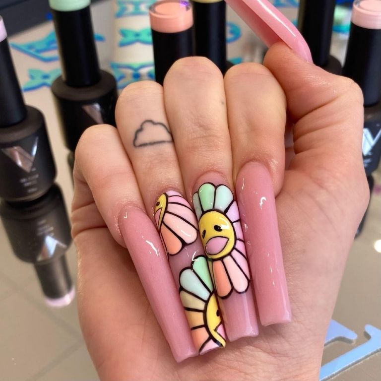 Los diseños con flores nunca pasan de moda, puede llevarla solo en unas cuantas uñas para que tu manicura no se vea demasiado saturada.