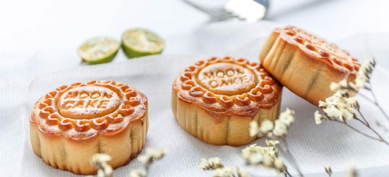 Originalmente llamado Yuèbǐng, este postre es un pastelito hecho de agua, harina, sirope dorado y semilla de loto, suelen tener grabados en toda su superficie.