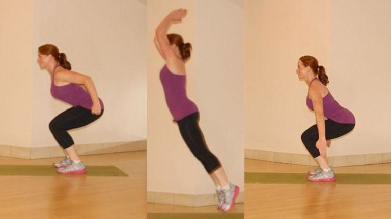 Tienes que ponerte en cuclillas con las manos detrás de la nuca y comenzar a brincar hacía a delante, de una pared a otra (dependiendo de la distancia puede ser menos).