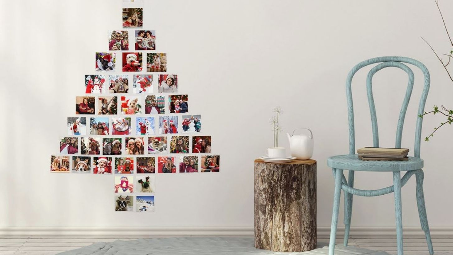 Con la ayuda de un poco de cinta adhesiva y el álbum de fotos familiar, viste la pared de la sala con las tomas más emblemáticas que hay, mientras imitas la forma de un árbol de Navidad. ¡También puedes usar las viejas fotos navideñas para ir más acorde con el ambiente! Es muy divertido, pero ten cuidado de no olvidarte de algunos de los invitados...