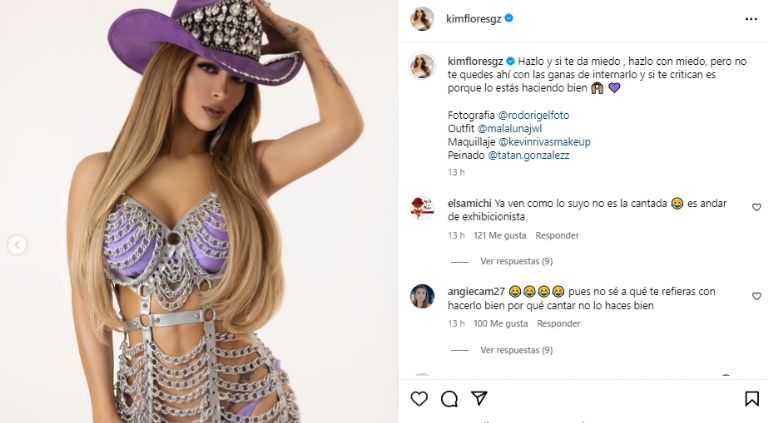Tal como era de esperarse, las palabras de Kimberly Flores dividieron opiniones, pues mientras unos la apoyaron a que se atreva a cumplir sus sueño, también hubo quienes se mantuvieron firmes en que lo suyo no es cantar: "Pues no sé a qué te refieras con hacerlo bien, porque cantar no lo haces bien", "Ya ven como lo suyo no es la cantada, es andar de exhibicionista", "Será que es la siguiente diva de la banda", "No te equivoques con el don de cantar y tus berridos", "Lo dice porque sabe que la van a criticar", fueron algunos de los comentarios que recibió.
