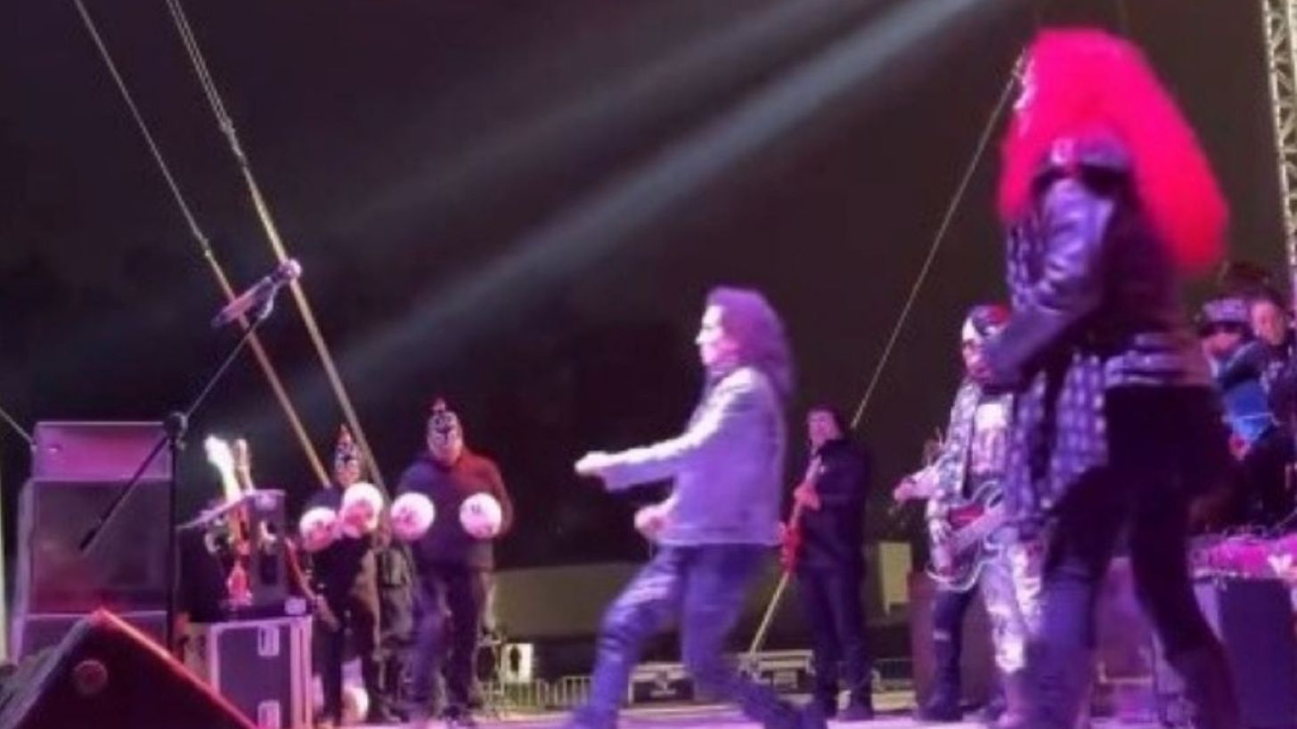 Y es que todo iba bien en el show, hasta que el cantante de 71 años quiso animar a su público al patear un balón, pero no calculó su movimiento y cayó de espaldas, por lo que tuvo que recibir ayuda de sus asistentes para reincorporarse e incluso su esposase acercó para ver que todo estuviera bien.
