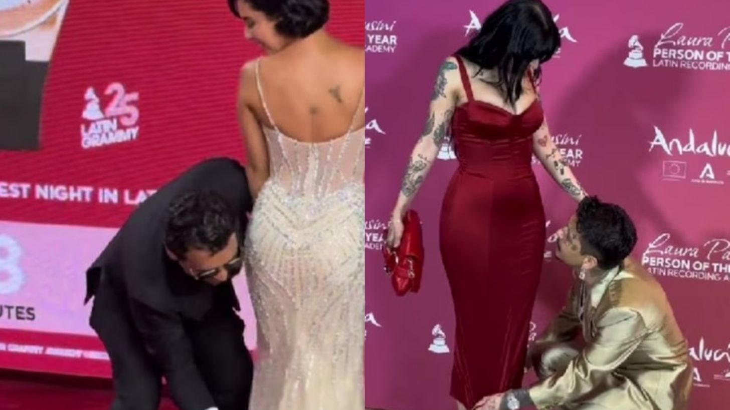 En aquel momento, Cazzu y Nodal iban entrando a la alfombra roja, cuando el sonorense se arrodilló y acomodó la falda del vestido de la trapera, el cual también era corte sirena, pero en un estilo un tanto distinto al llevado por la denominada ‘Princesa del Regional Mexicano’. Si bien, la ola de odio primero fue dirigida hacia Christian, no tardó en dirigirse hacia Ángela Aguilar, a quien criticaron por supuestamente ser quien le pidió a su marido que la ayudara con la falda.
