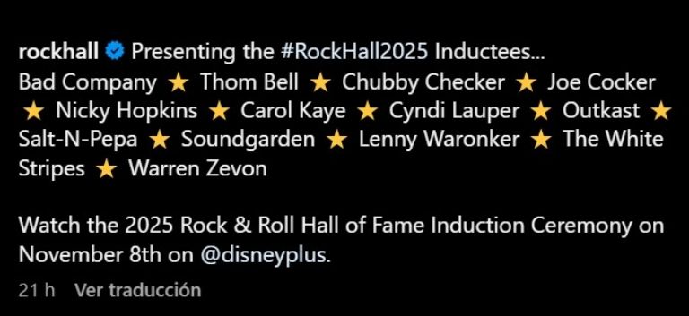 Por último, hay que tener en cuenta que basándose en datos extraídos de Billboard y Salón de la Fama la ceremonia de inducción se celebrará el próximo 8 de noviembre en el Peacock Theater de Los Ángeles, en cuanto a si se desea ver el evento que honra a aquellos que han jugado un papel importante en la creación y difusión de la música, se podrá lograr con una transmisión en vivo a través de Disney+